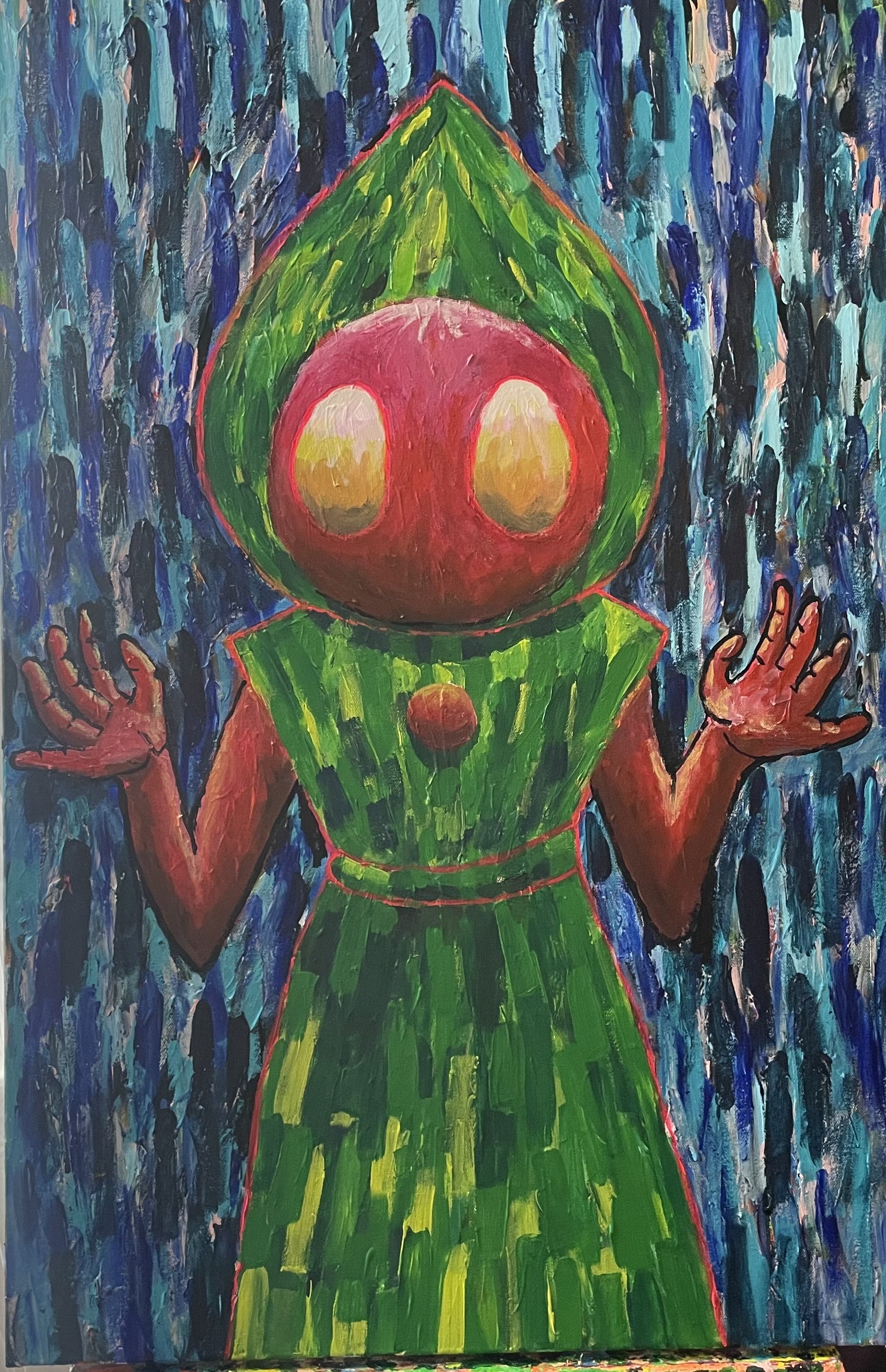 David LaMorte. Flatwoods Monster. Acrylic on canvas. 24” x 36”. 2026. NFS.