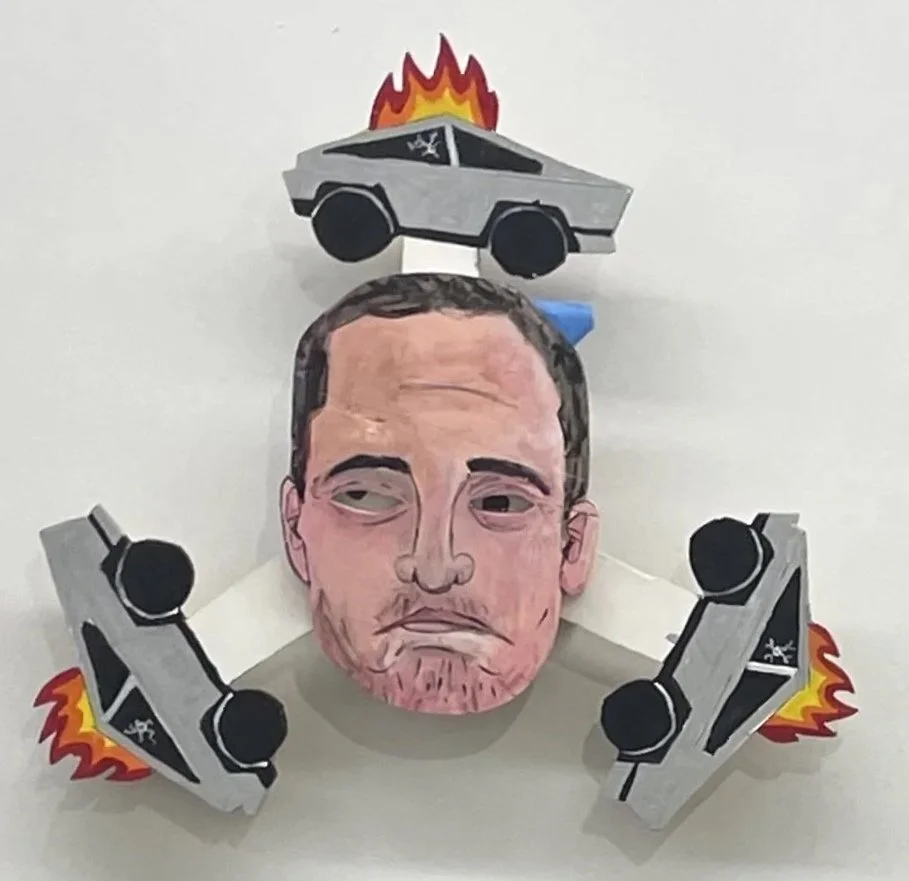 David LaMorte. Elon and on and on. Acrylic on moving plywood. 36”x36”. 2025. .$1000.