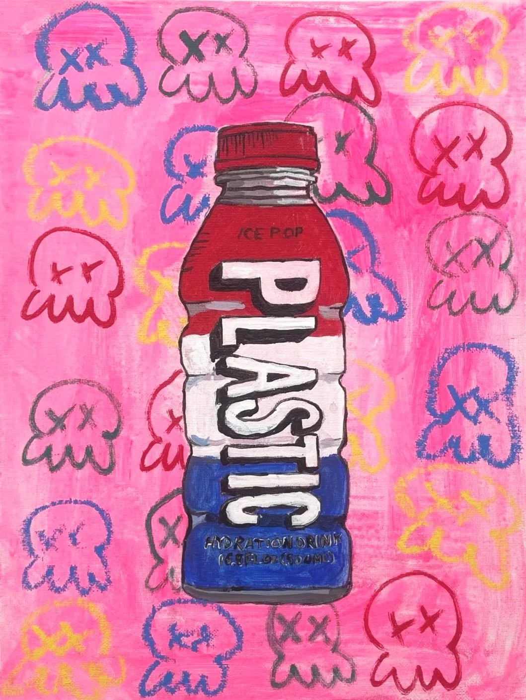 David LaMorte. Plastic I. Acrylic on canvas. 9”x12”. 2025. $300.