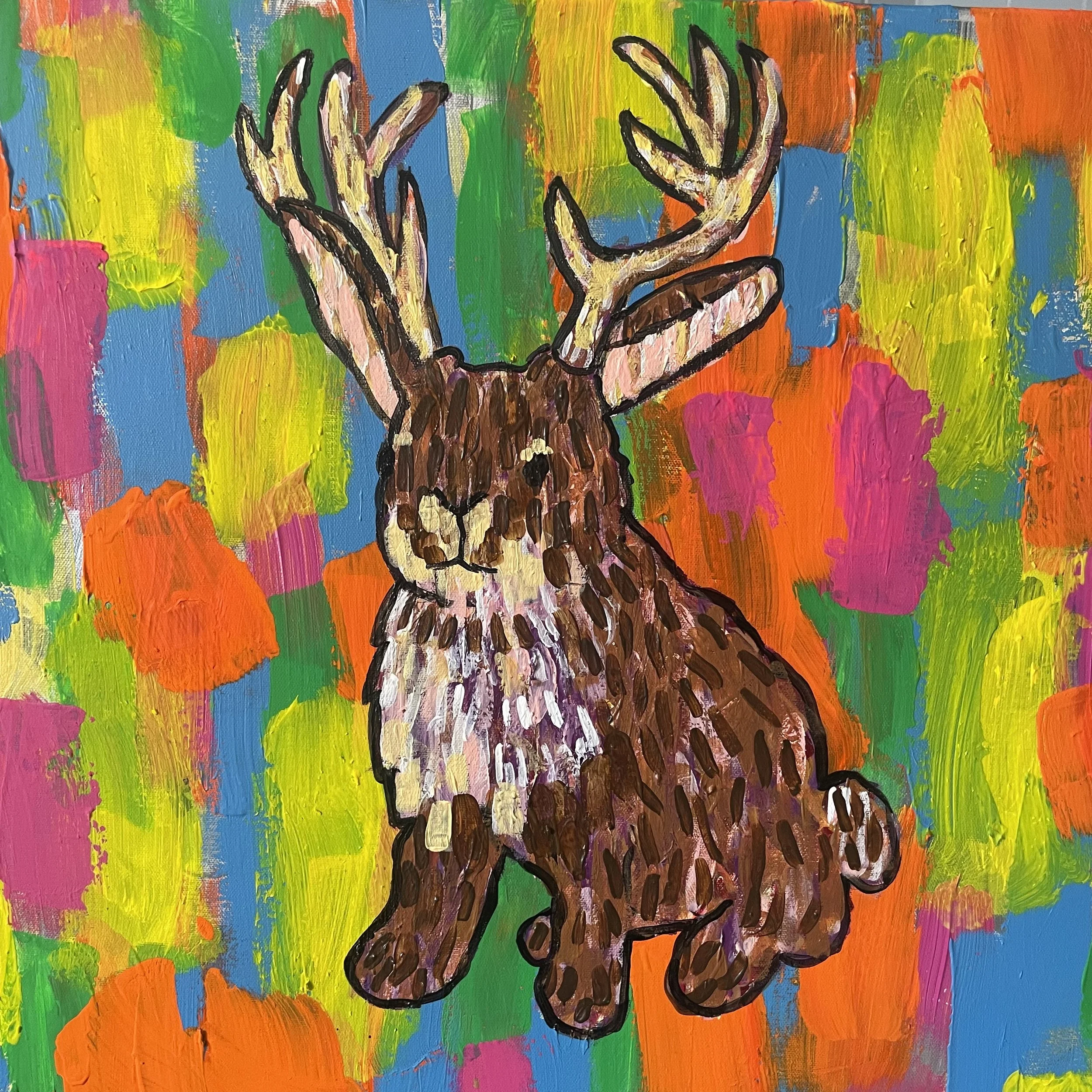 David LaMorte. Jackalope. Acrylic on canvas. 32”x32” 2025. $300